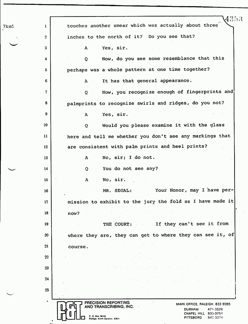 Q Or on the overlay on top of it, or on the photograph on top of it -- wouldn't you want to begin to point out where the points of match are so that somebody else could look at this and say, "Why, yes, I see that you are right, Segal; you have matched them together correctly"?