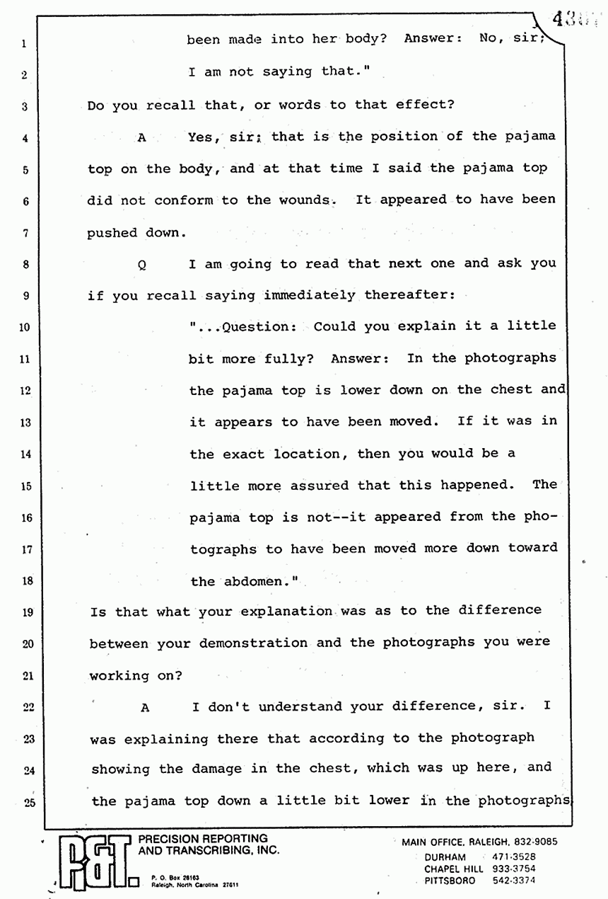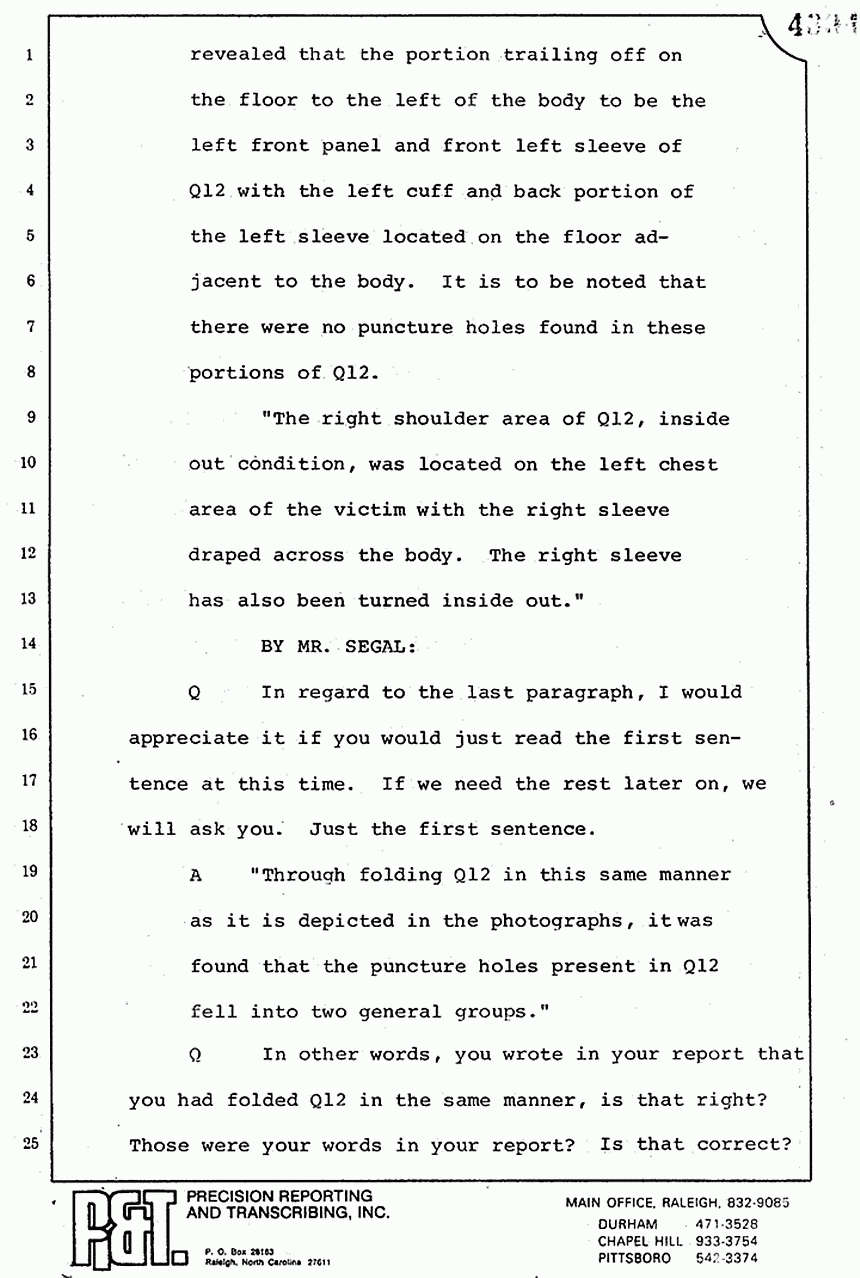 A Well, in the first place, sir, we do not have a K-1 and a Q-1 in the pajama top. It was all torn, but it was all one piece. It was designated as one piece.