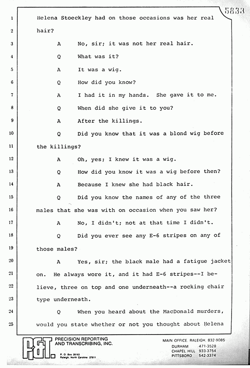 A To my knowledge; no, sir, except Helena Stoeckley.