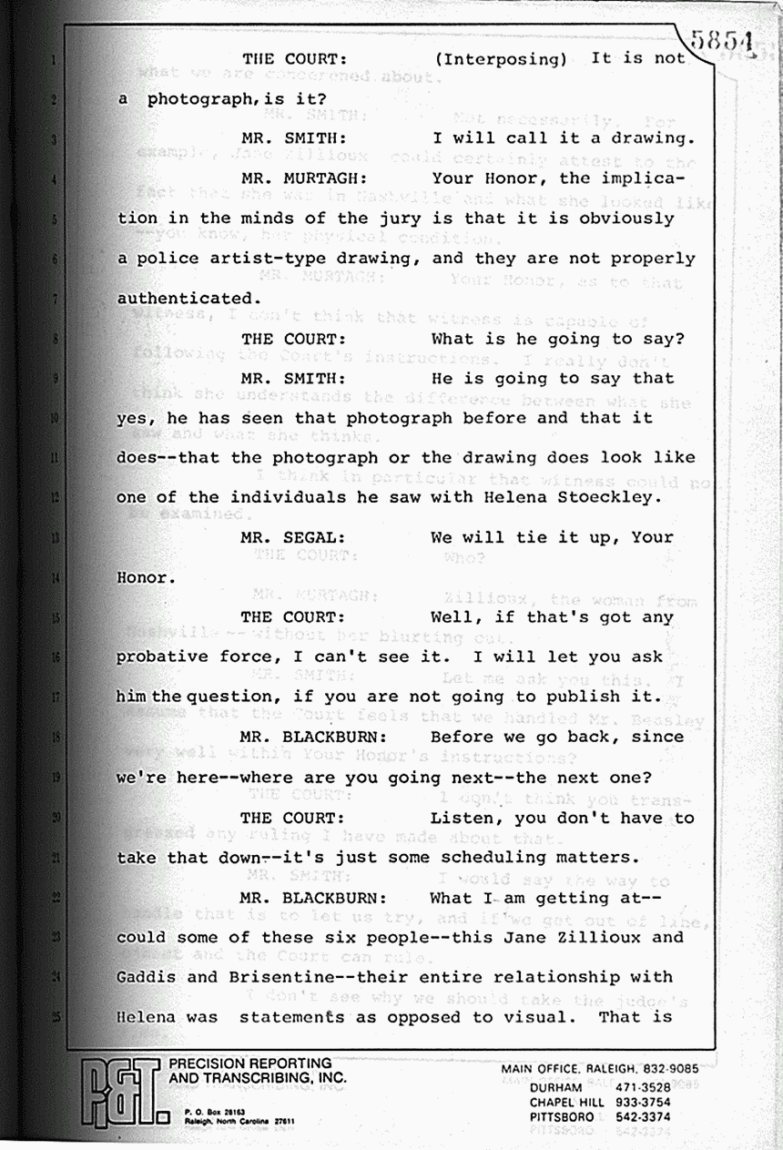 Q Mr. Beasley, does that drawing portray fairly any individual that you ever saw with Helena Stoeckley?