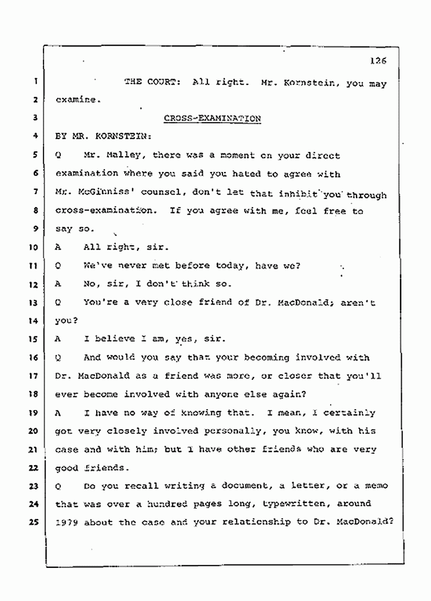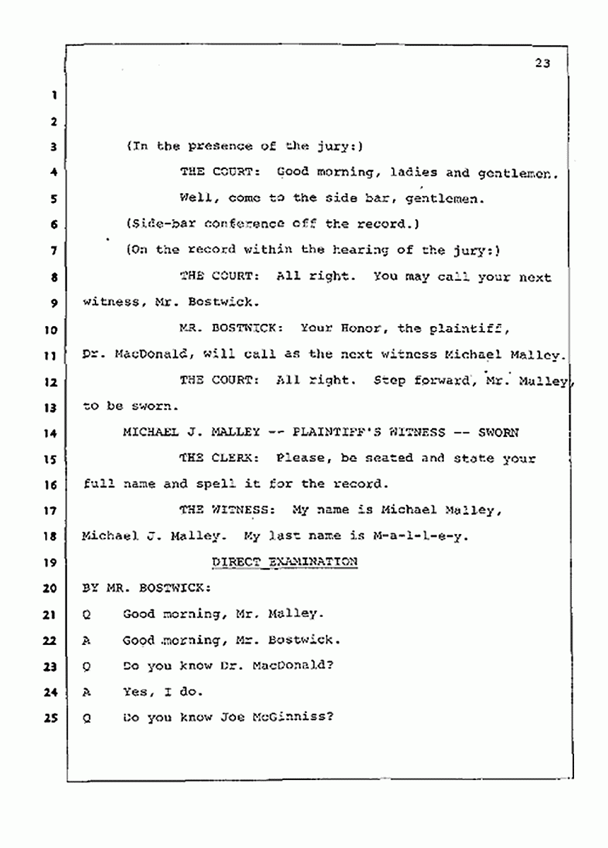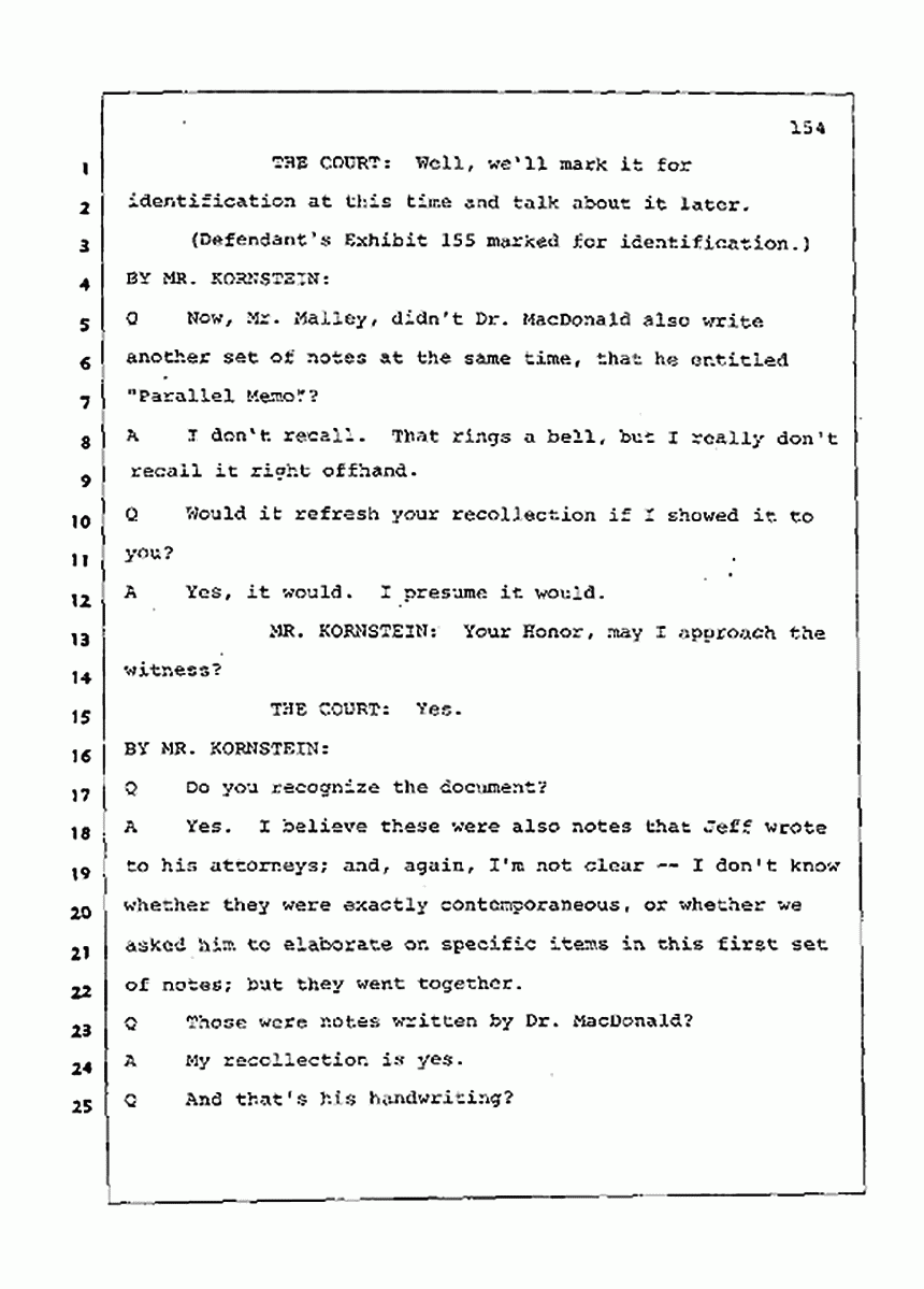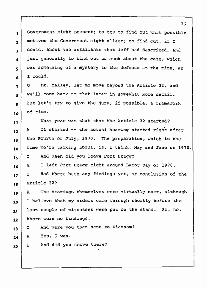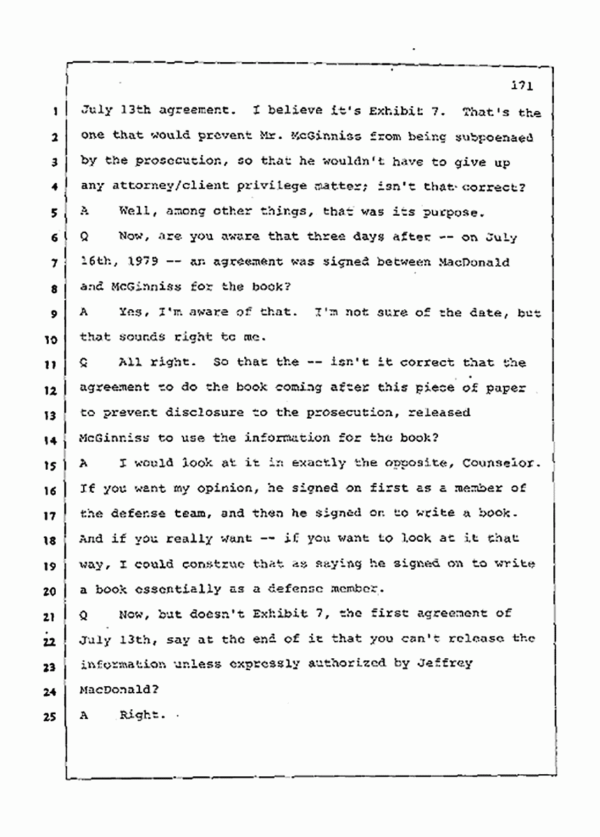 | July 8, 1971: | Letter from Michael Malley to Jeffrey MacDonald, with  |
