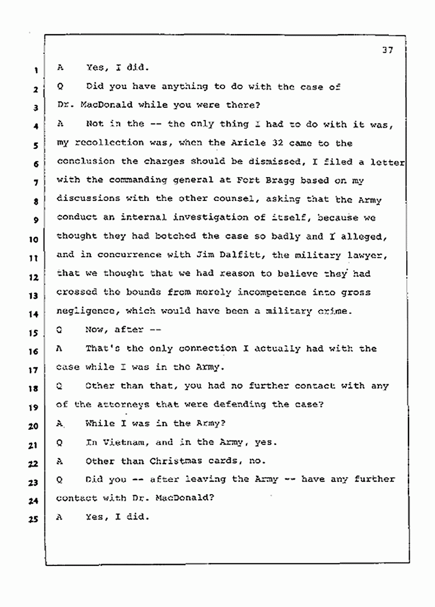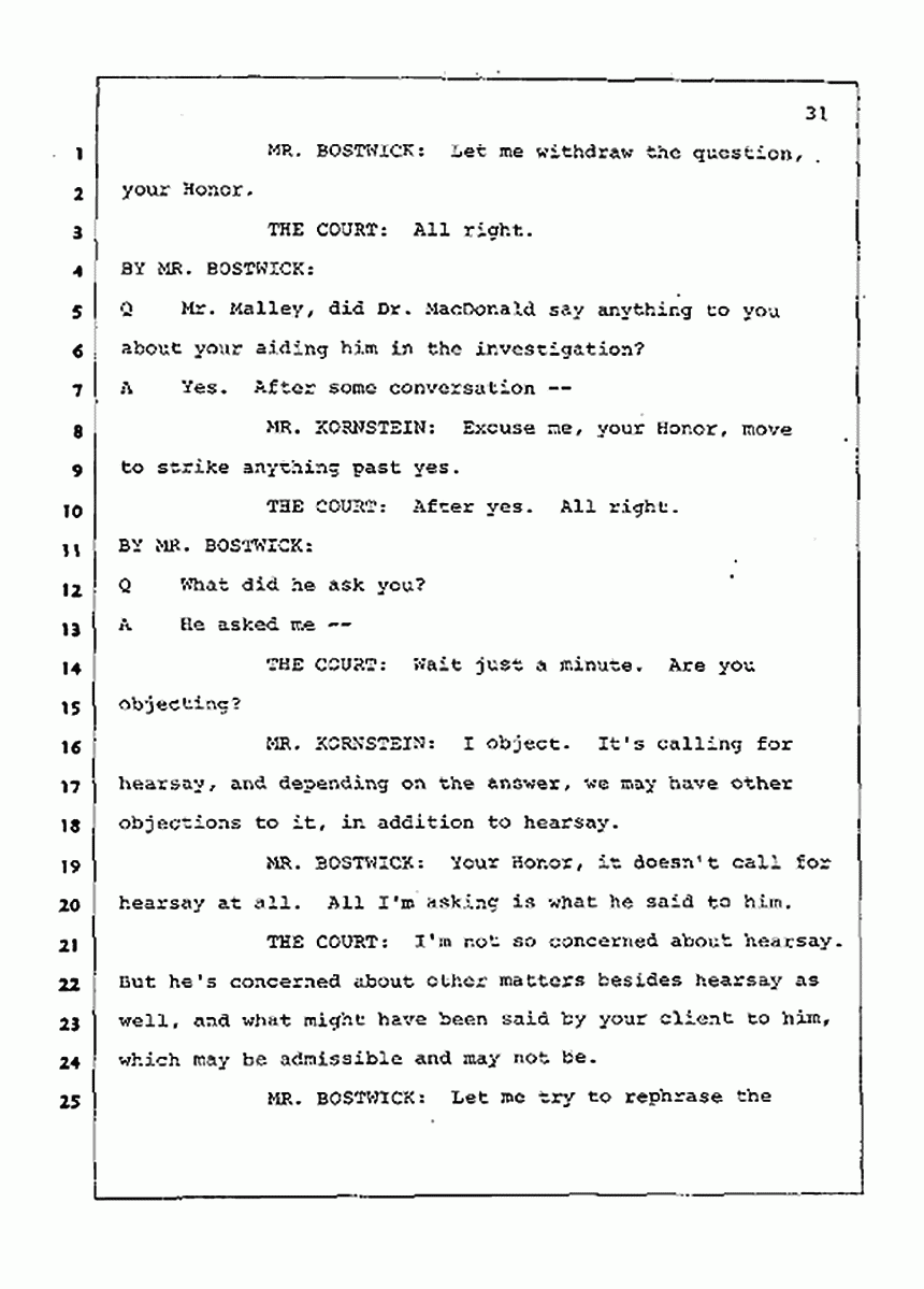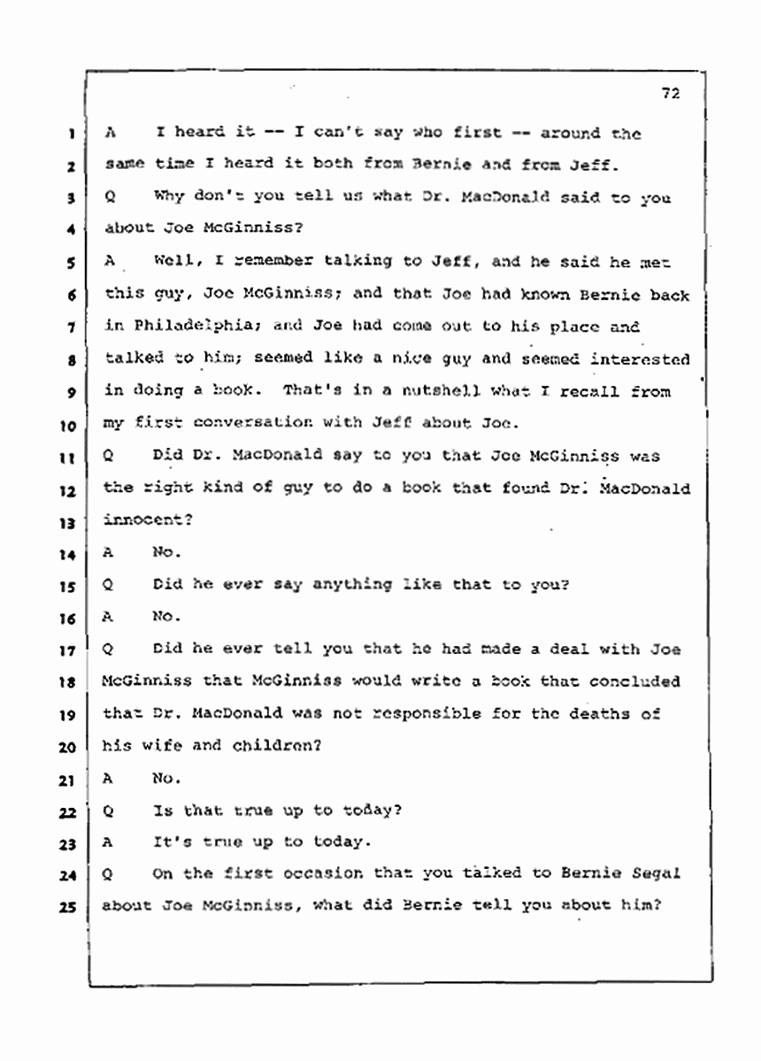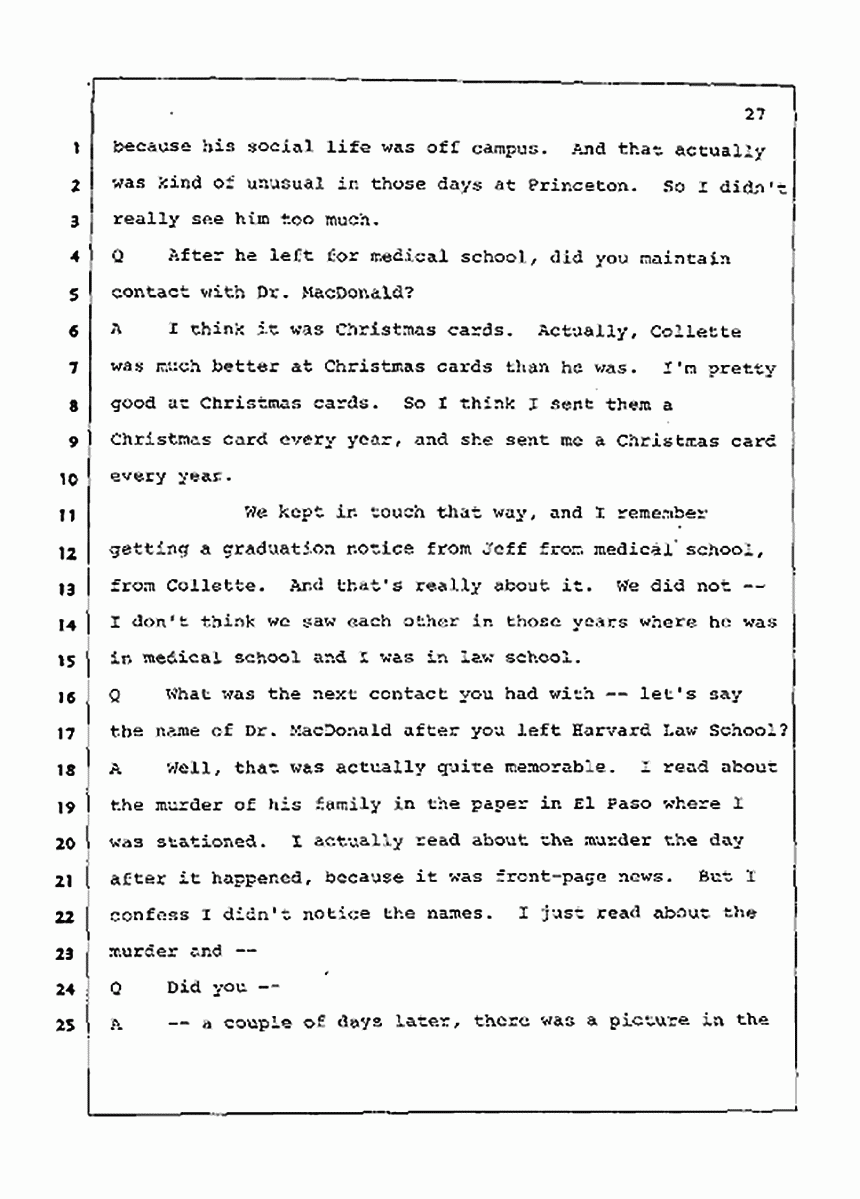 | July 8, 1971: | Letter from Michael Malley to Jeffrey MacDonald, with  |