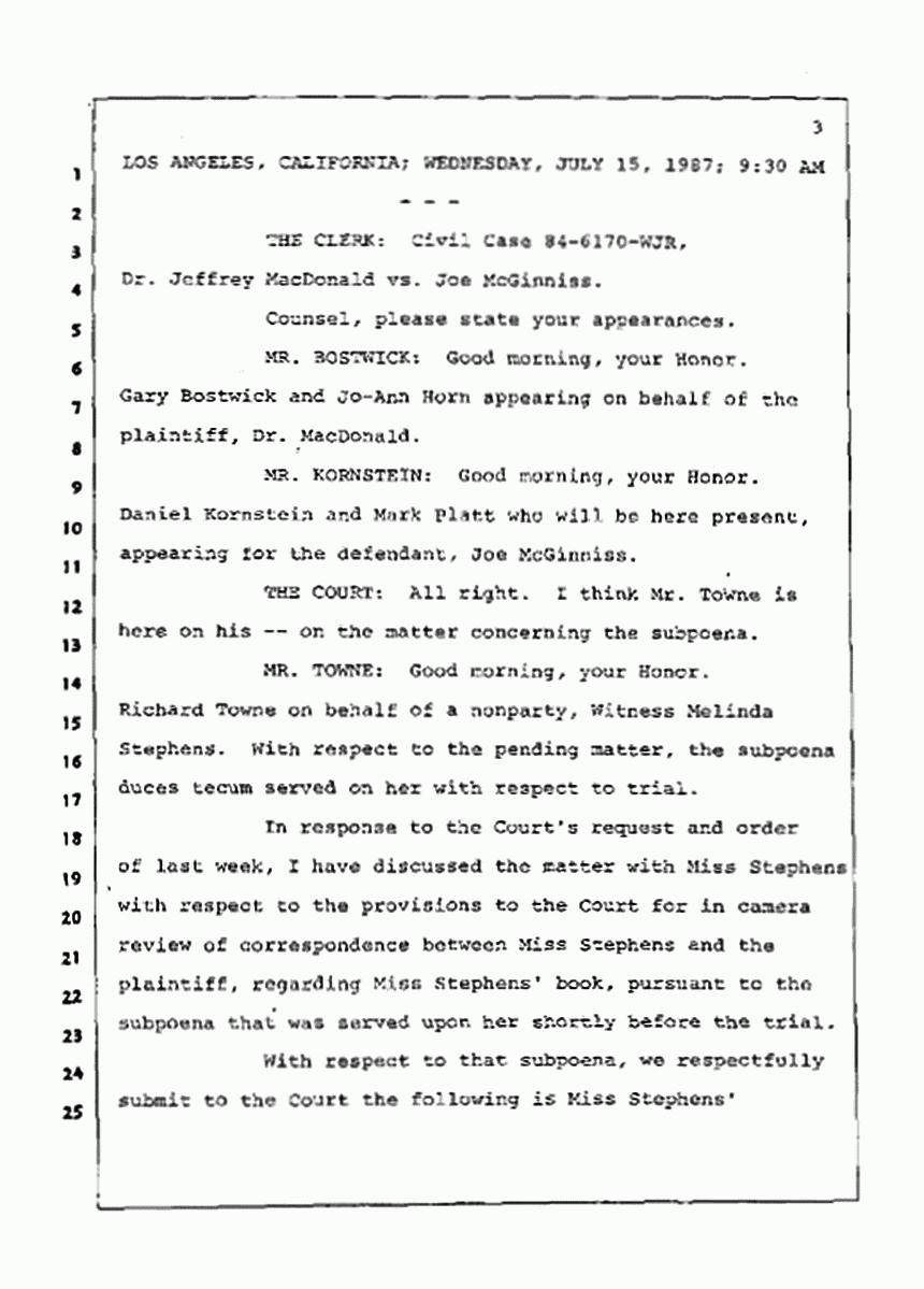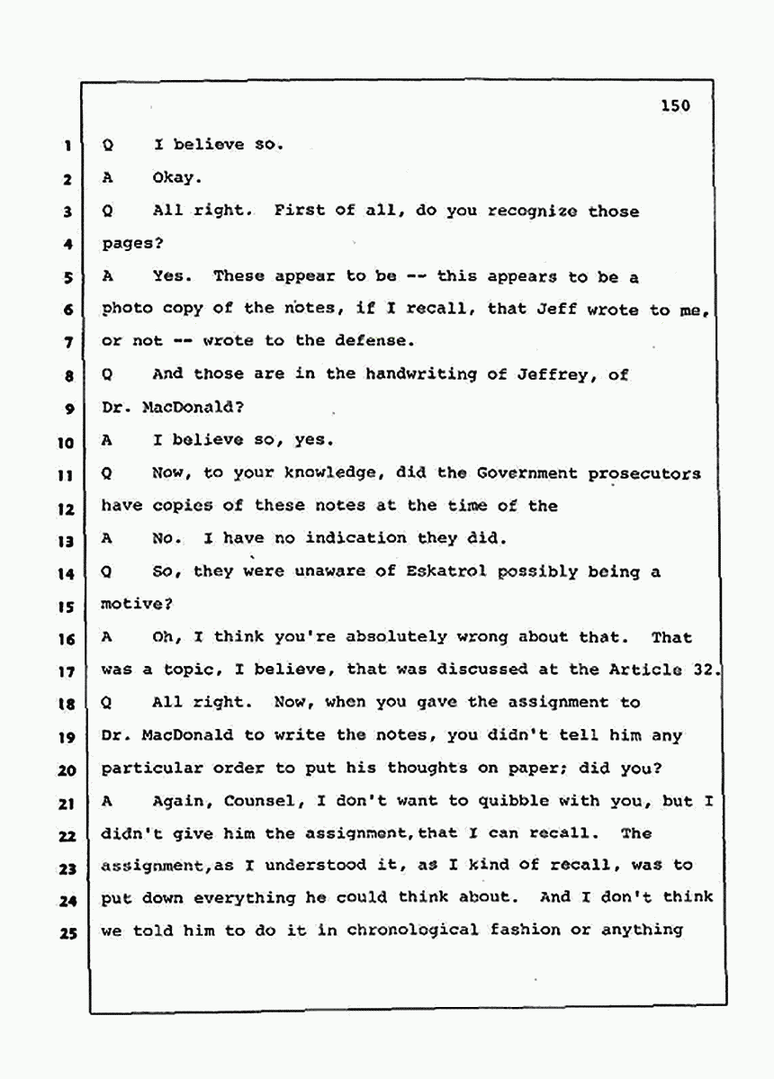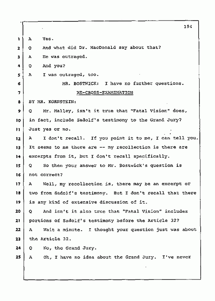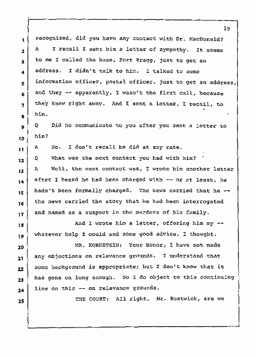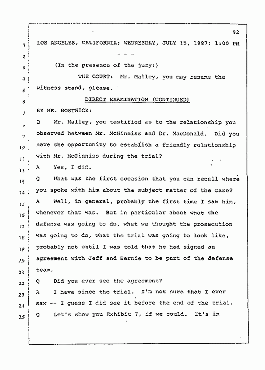 | July 8, 1971: | Letter from Michael Malley to Jeffrey MacDonald, with  |